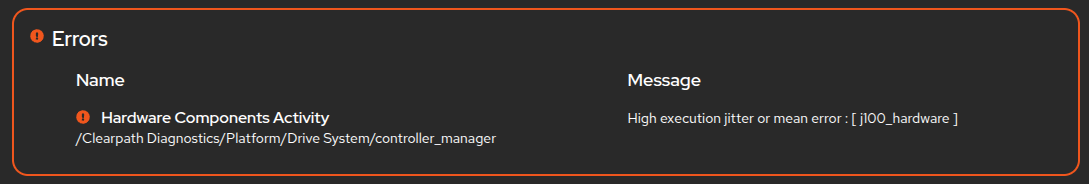 You may see errors or warnings regarding High execution jitter from the controller_manager Hardware Components Activity or Controllers Activity. This is expected and can be ignored.