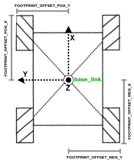 | FOOTPRINT_OFFSET_POS_X | Distance from base_link to the furthest edge of any part/sensor at the front of the UGV. | + |