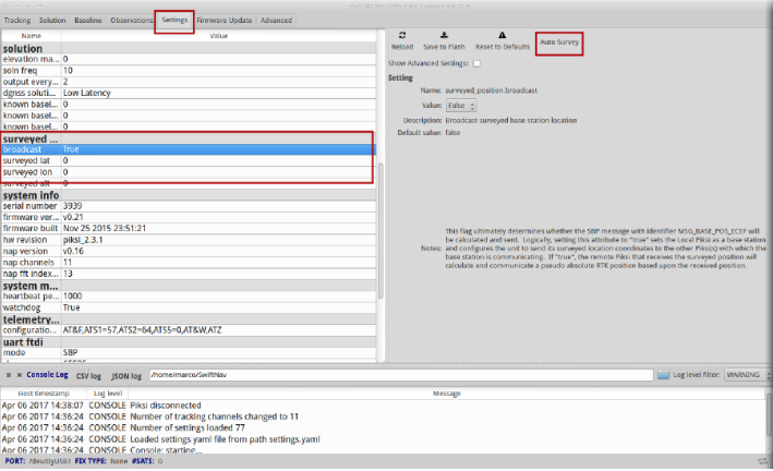 Base Station Survey: Piksi Console