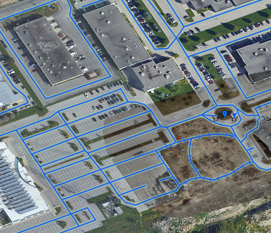 Network of paths uses a directed graph to define the robot's valid driving area. When executing a mission the robot plans its route to follow the edges of the graph to get from waypoint to waypoint. The exact route taken is dynamic and may change depending on the robot's exact starting location, detected obstacles along some edges, and the geometry of the graph itself.