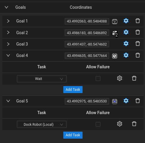 Goalpoints that have a heading or tolerance assigned to them will show a different colour on their settings icon.