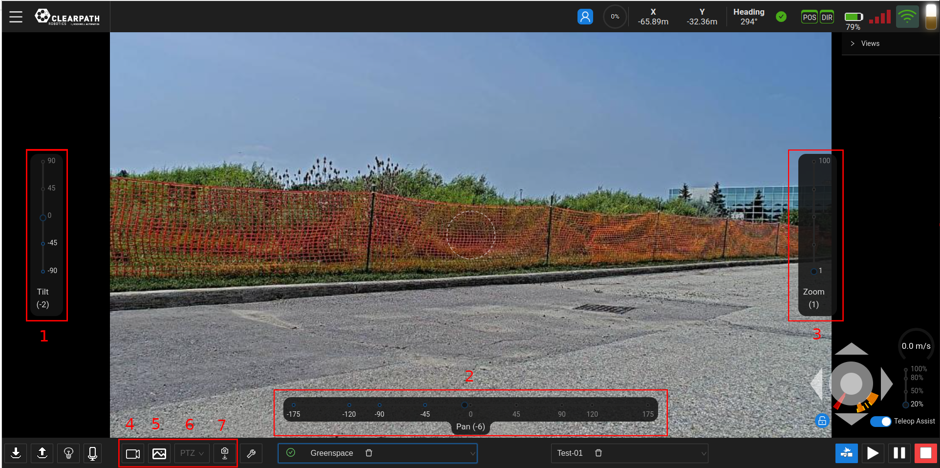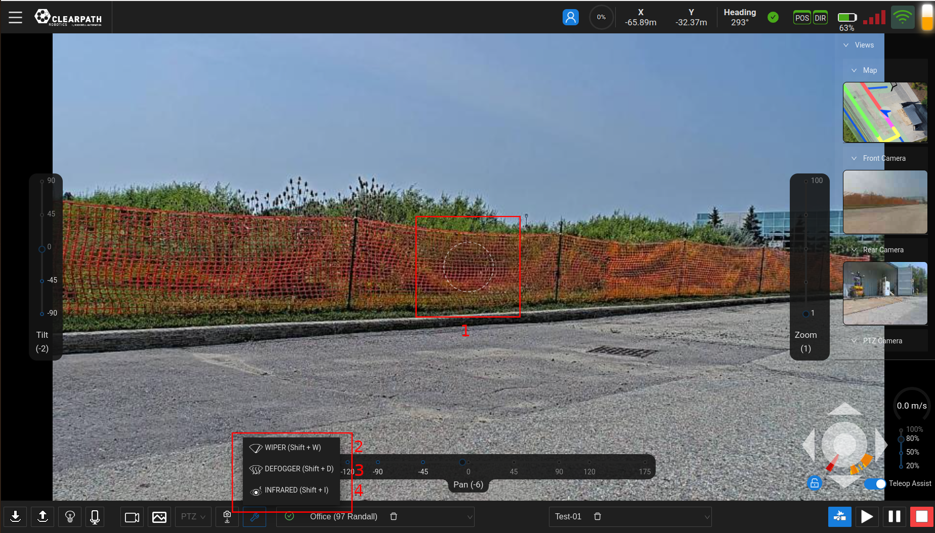 If PTZ and/or Front/Back camera(s) are included on the UGV, their feeds can be viewed through the UI and the PTZ can be controlled through the UI. If not, there will not be any PTZ, Front/Back view(s) in the list of available views.