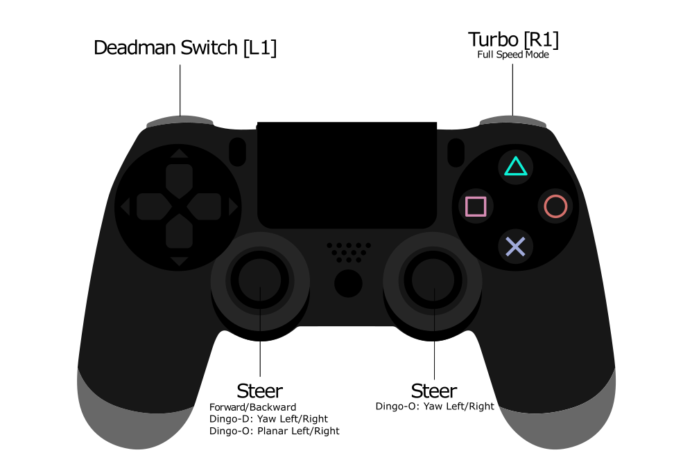 - Dingo-D uses differential drive and has two module bays, one of which must be a battery module; the second module is typically a computer module.