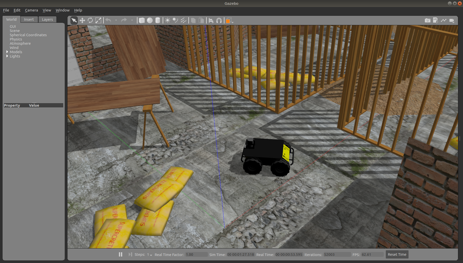 To launch Construction World with a Husky, run the following command: