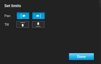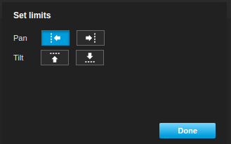 Click the Done button to apply the new limits. Note that the camera will now have a 2-degree deadzone at the rear where it cannot point. This is an unfortunate but unavoidable side-effect of setting the limits this way.
