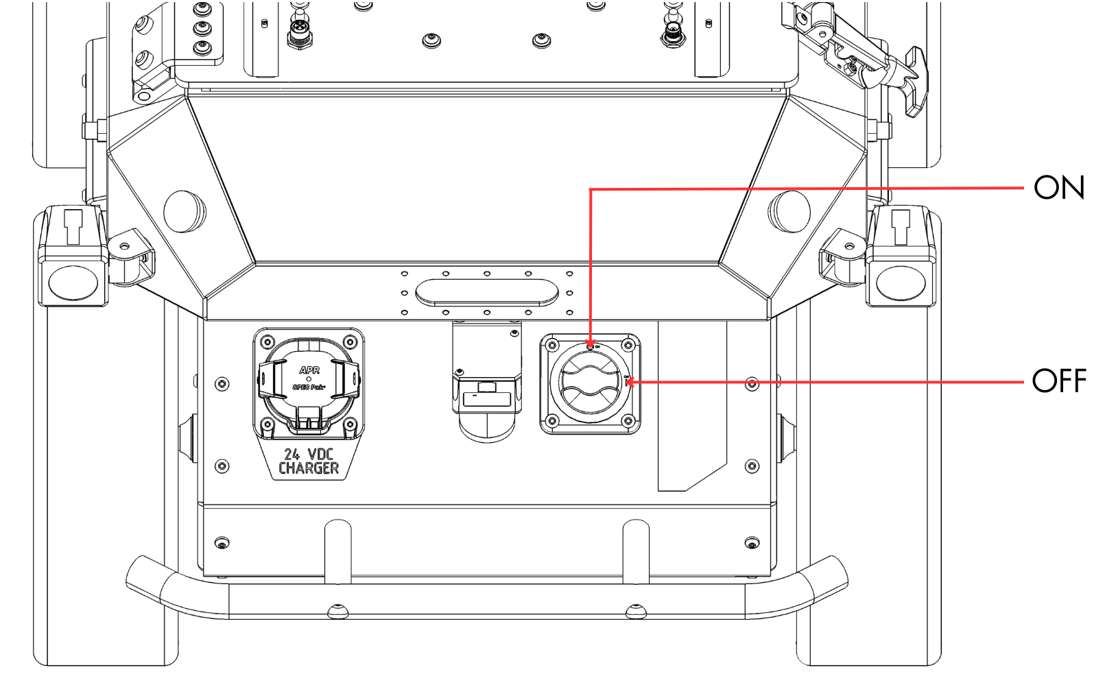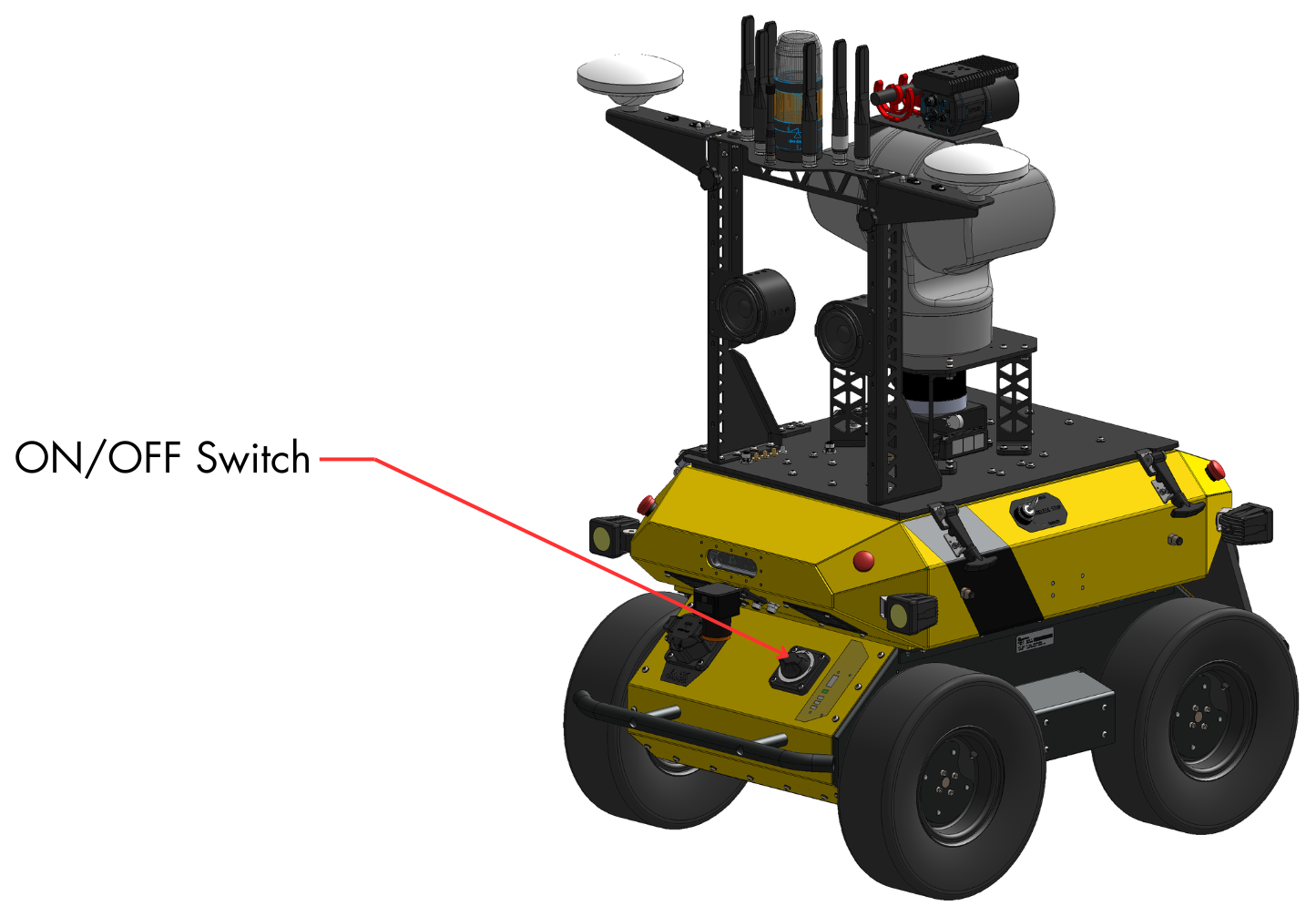 On the rear of the robot, the main power switch can be used to turn the entire system OFF and ON.