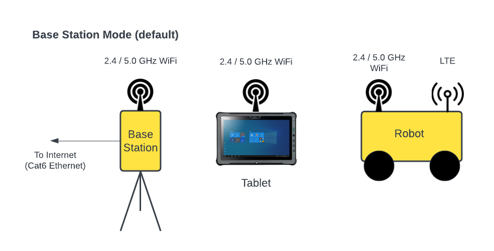 In some cases, it may be desirable to connect additional equipment, such as a laptop, to the Base Station network via WiFi. To do so, use the settings outlined below. By default, the Base Station is configured in DHCP mode; as such, the device being connected should be set for DHCP mode. Once connected to the Base Station, an IP address in the 192.168.132.0/24 will be assigned.