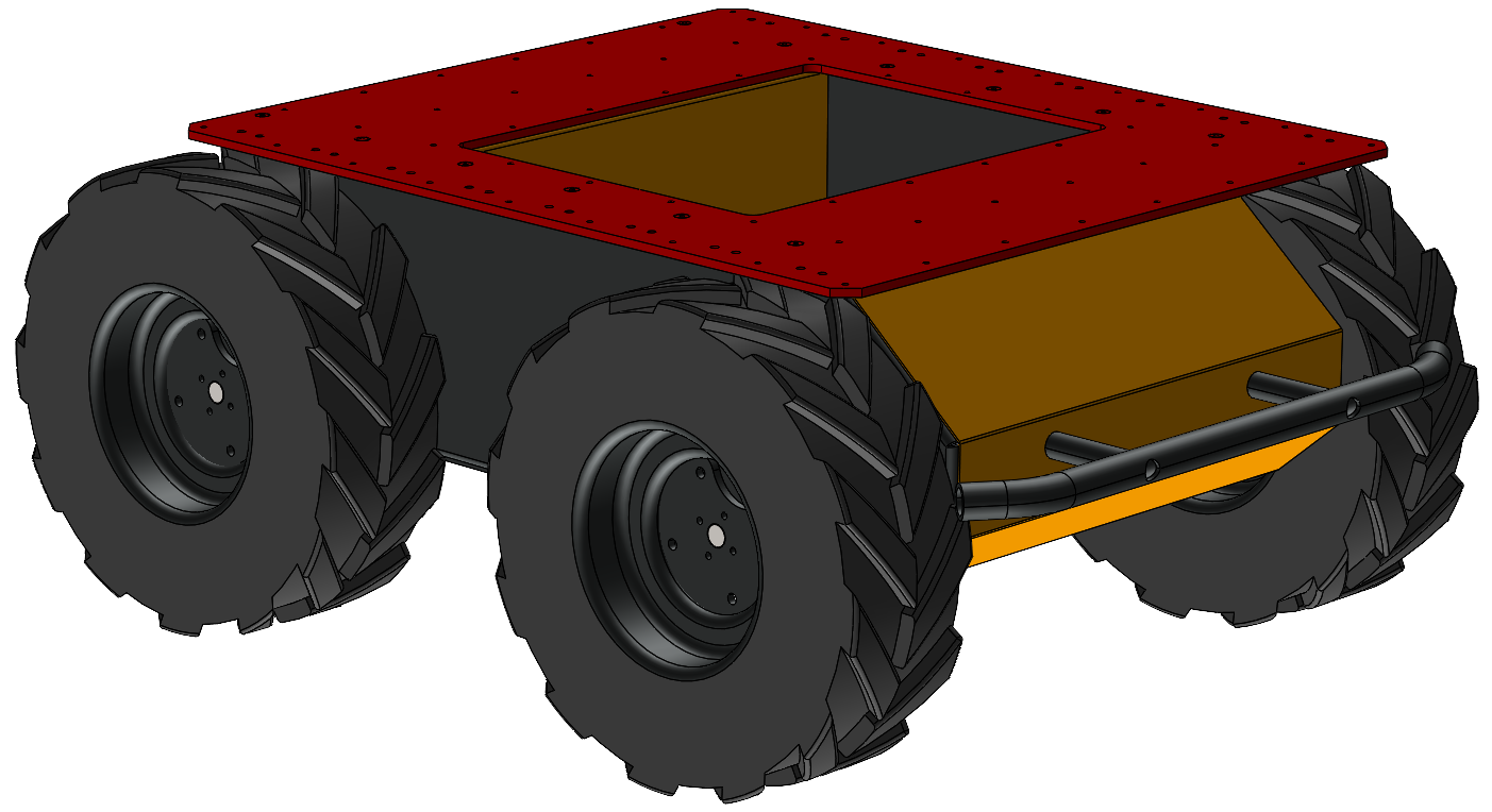 Place the assembly onto the Husky. The Husky's width may be larger than the assembly. It is easiest to start at the back of the Husky, and slowly rotate the assembly onto the Husky. You may need to loosen the 12 fastener connections from step 3 to get the assembly to fit onto the Husky.