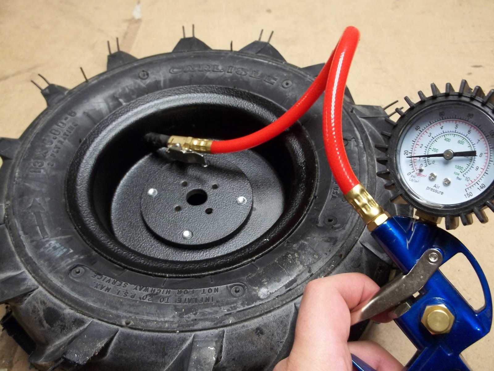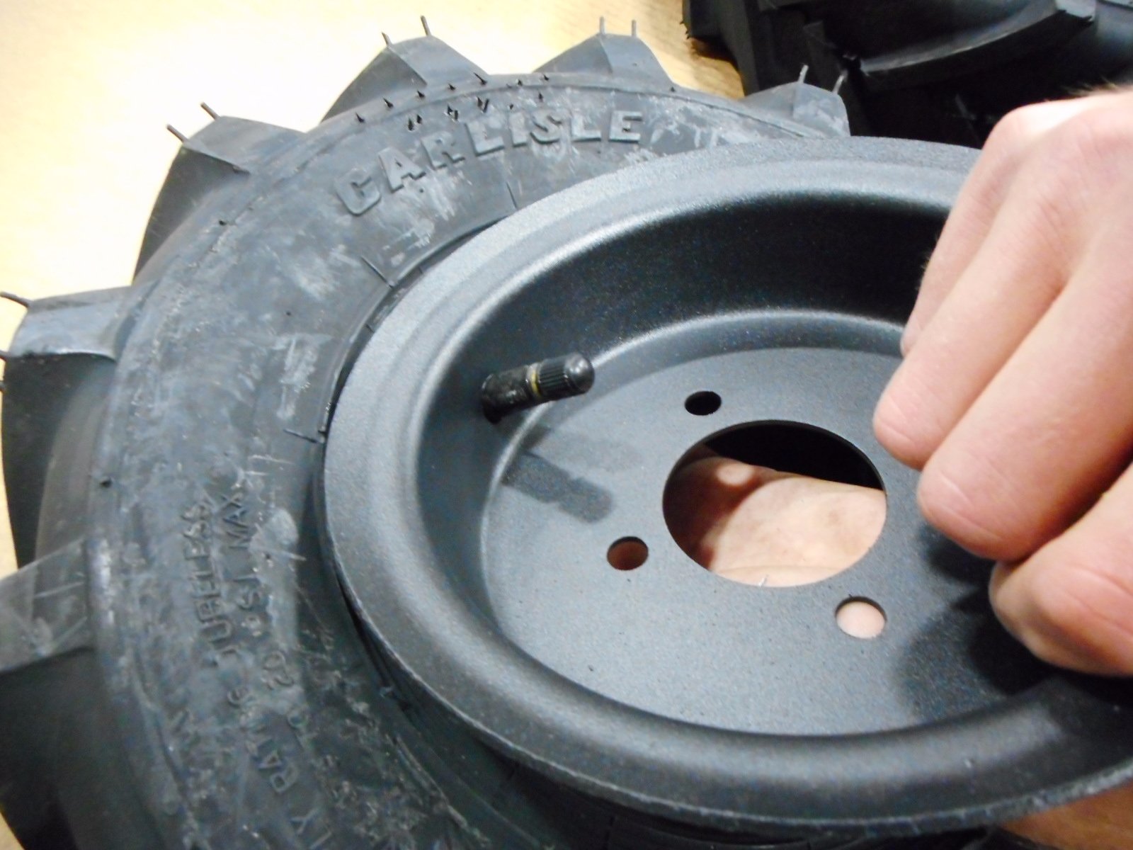 Place this on side of the tire where you want the air-fill stem to be. The picture shown is for a wheel on the left side of the Husky.