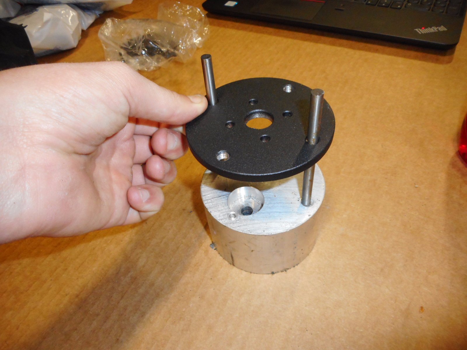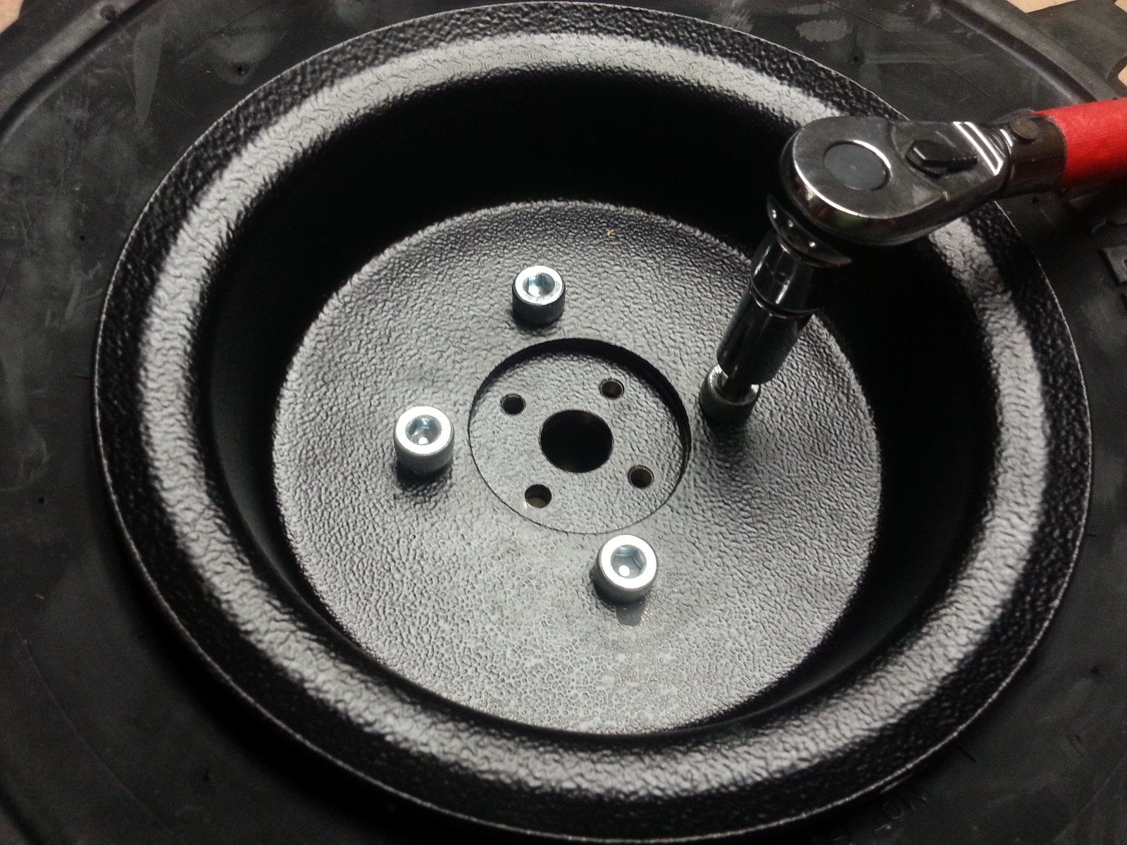 Note that the threaded adapter plate does on the side of the rim with the air-fill-stem. This adapter plate will be visible on the outside of the robot.
