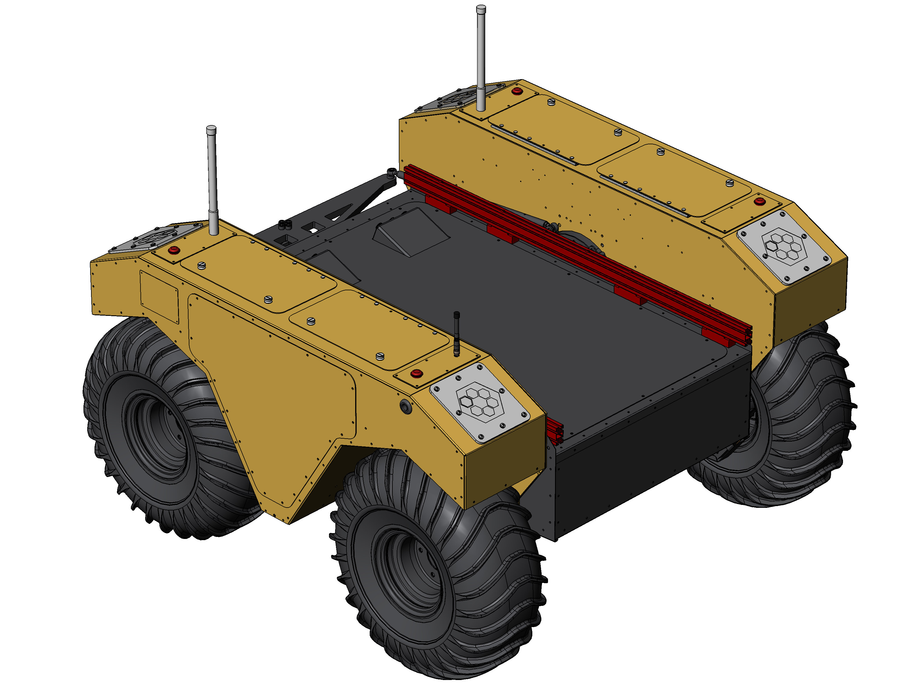 This kit adds 25 mm X 50 mm aluminum extrusions to both sides of the Warthog. The extrusions are attached to the Warthog using M6×1 stainless steel screws, and stainless steel rivets with a Ø5 mm shank.
