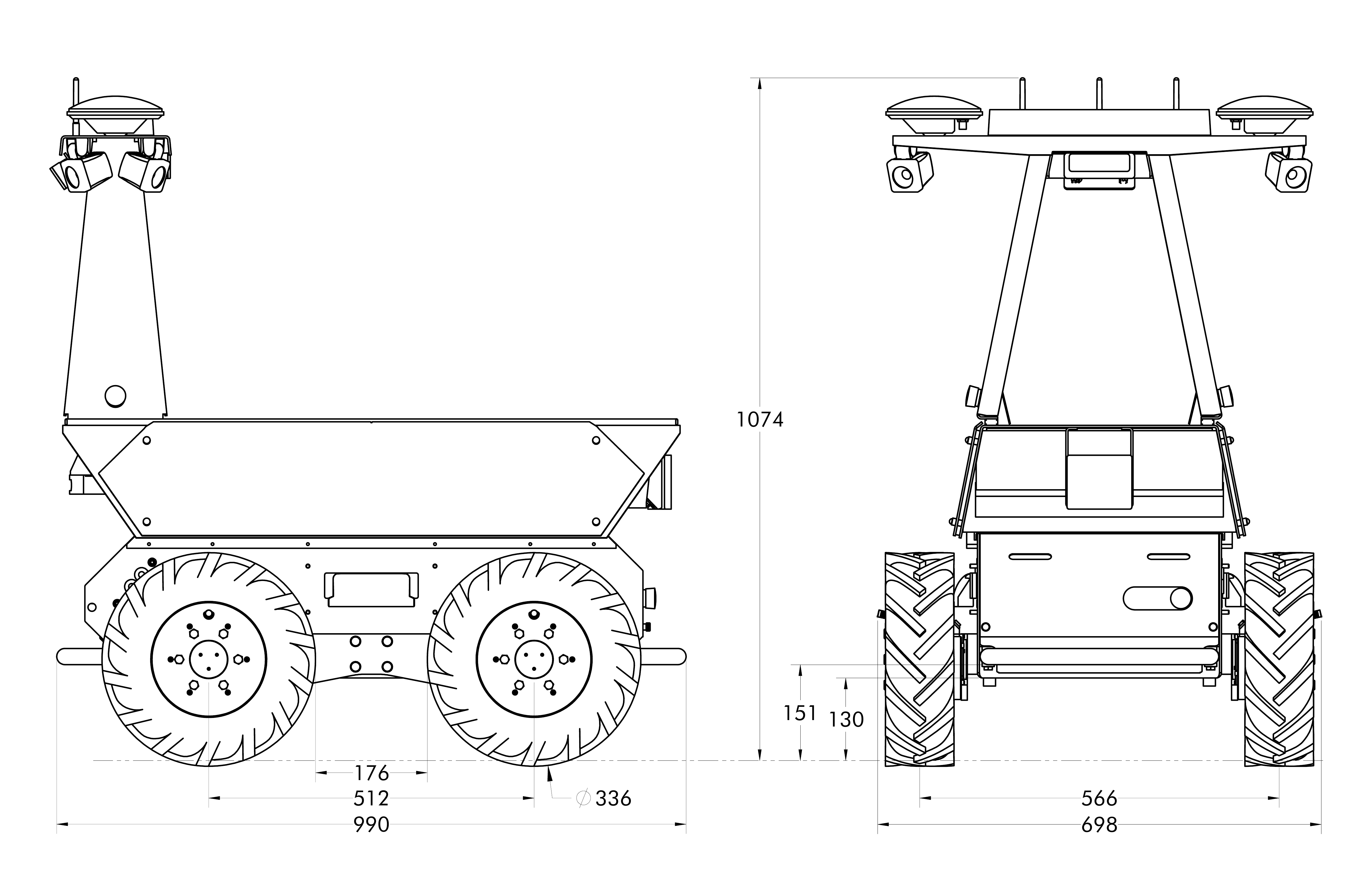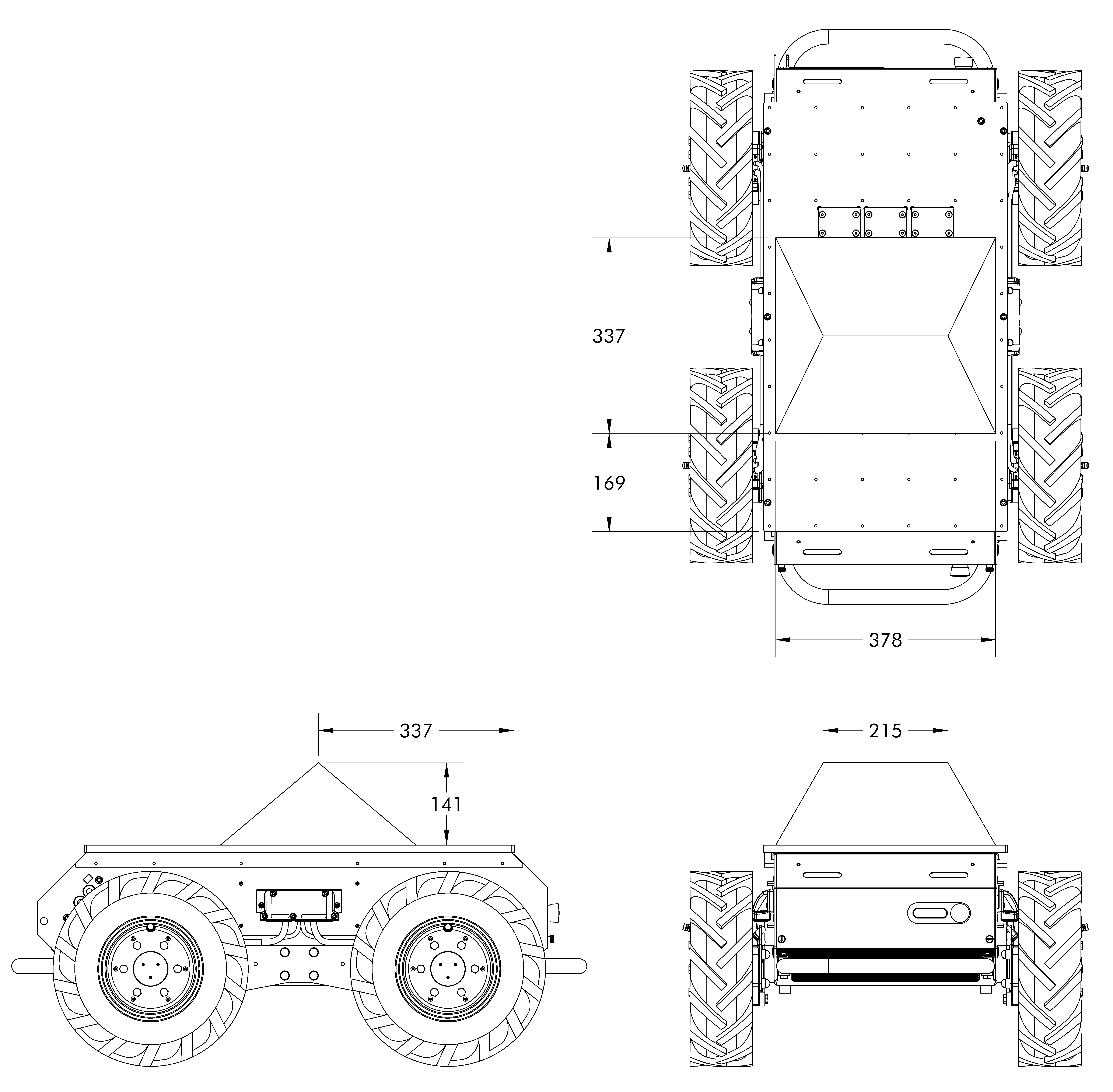 Refer to the STEP model for more measurements of the Husky AMP's interface areas.