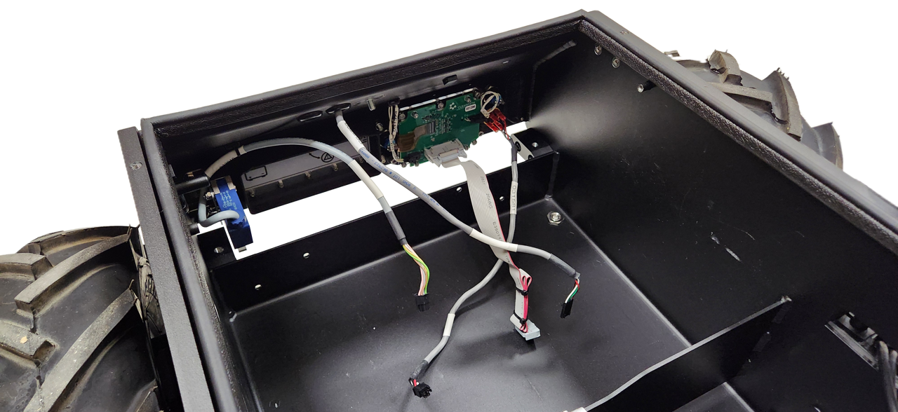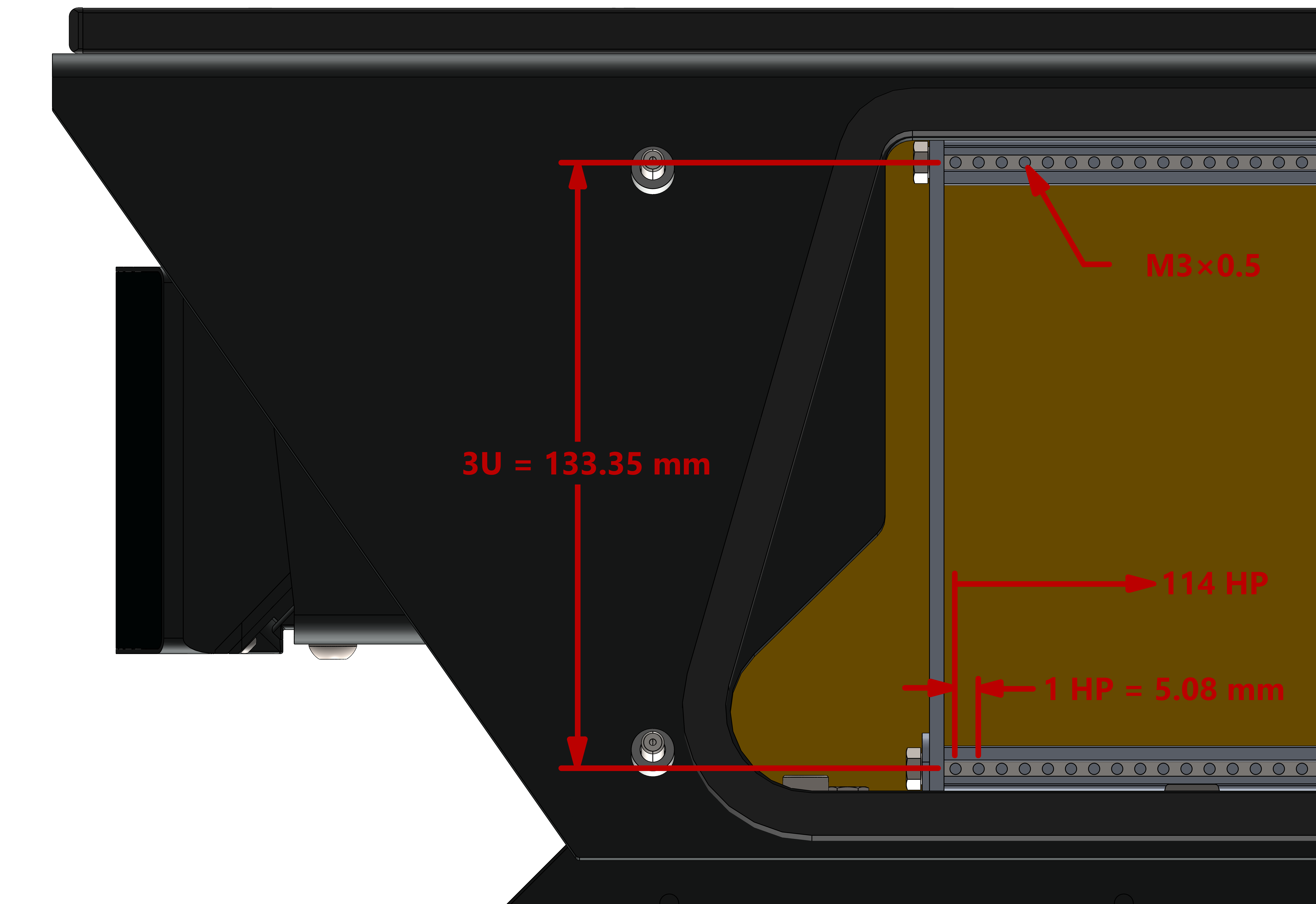 The Husky AMP's enclosure includes a metal rack with many M3×0.5 threaded holes. The spacing of these holes conform to the Eurorack 3U standard. You can create your own modules to interface with this rack, or purchase modules from Clearpath.