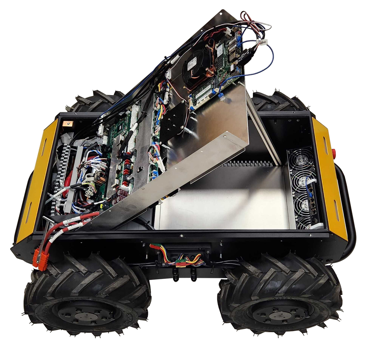 The System Interface circuit board has support for 4 additional 12 V brushless 4-wire PWM fans. Ports FAN 1, FAN 2, FAN 3, and FAN 4 are already used by the base Husky A300. Ports FAN 5, FAN 6, FAN 7, and FAN 8 are available for your fan expansions.