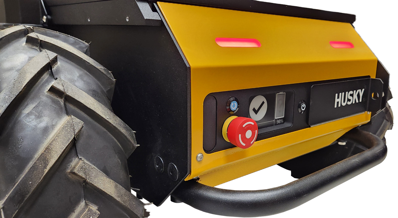 Husky A300 with payload can have a total kinetic energy of 360 joules of energy (180 kg at 2 m/s). This is a significant amount of energy that can cause severe injury or death.