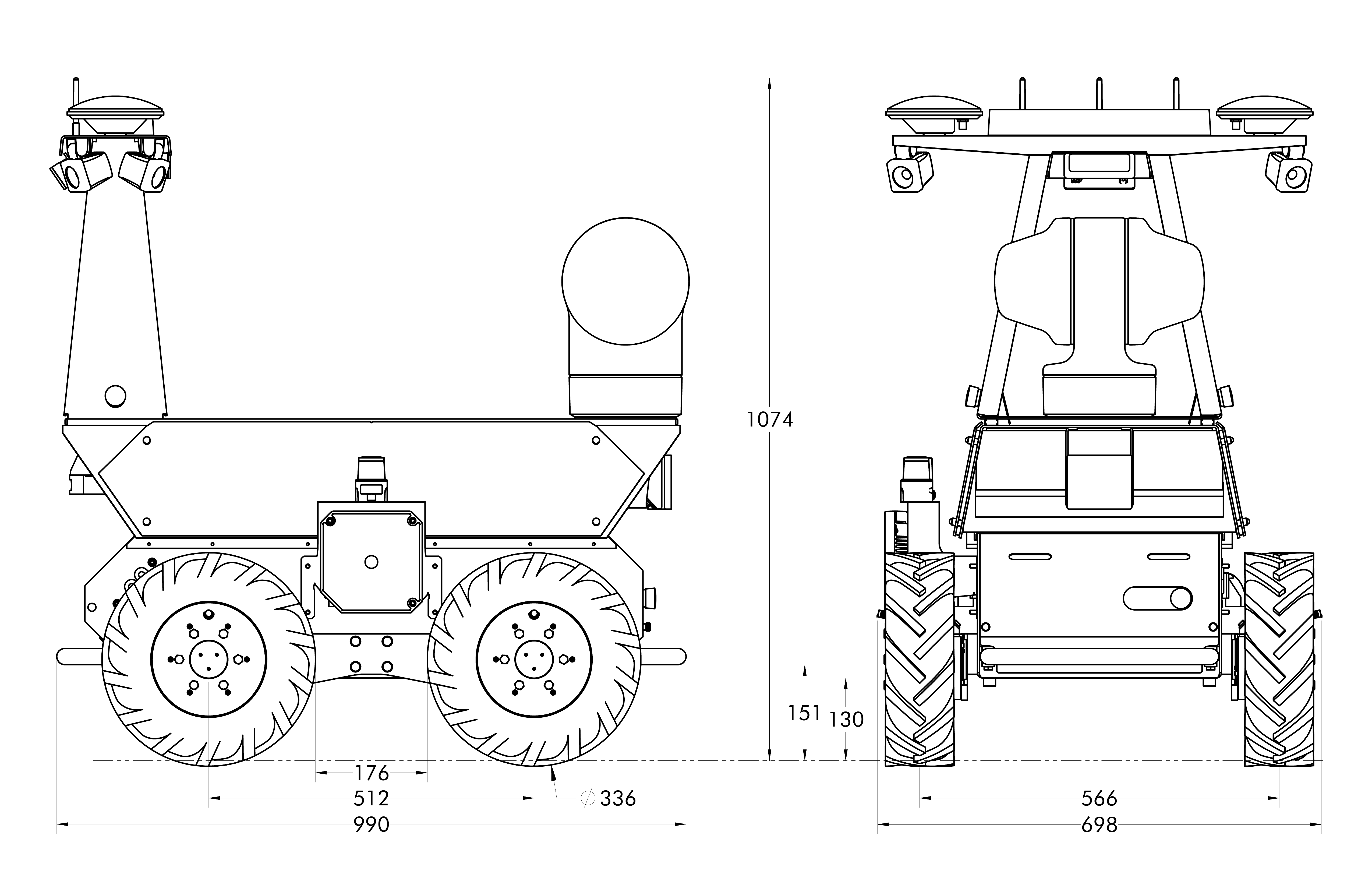 Refer to the STEP model for more measurements of the Husky AMP's interface areas.